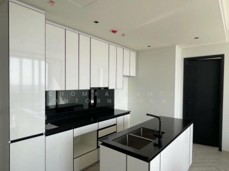 The open-plan living and dining area is the heart of the home, featuring large windows that allow natural light to fill the space while offering stunning views of the Chao Phraya River. The living area is spacious enough for a comfortable sofa and entertainment setup, while the dining area can easily accommodate a dining table for four, making it ideal for both casual meals and formal dining.