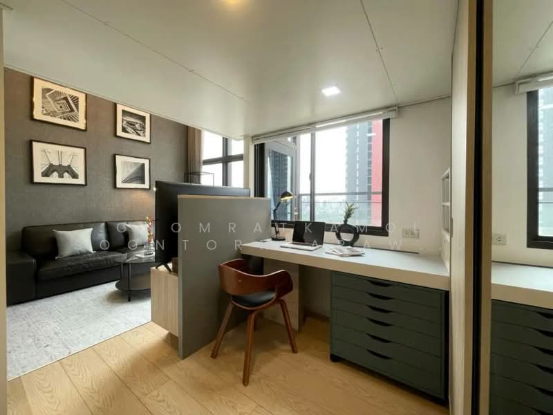 This 34 square meter one-bedroom condo sits on of Chewathai Residence Asoke in Makkasan, Ratchathewi, Bangkok. The home offers a modern fully furnished interior with a bright open-plan layout and impressive city skyline views.