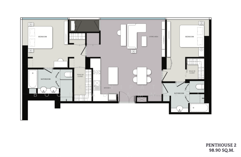 ขนาดพื้นที่ใช้สอยของยูนิต Cloud Residences SKV23 : คลาวด์ เรสซิเด้นซ์ สุขุมวิท 23 คือ 100 ตร.ม..