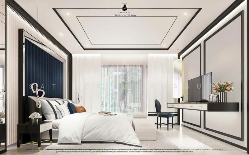 เอ็มบาสซี่ พัทยา (Embassy Pattaya) โครงการคอนโดมิเนียมความสูง 8 ชั้นสไตล์รีสอร์ทหรู บนทำเลใกล้หาดจอมเทียนเพียง 1.8 กิโลเมตร เดินทางสู่ถนนใหญ่ได้หลากหลายเส้นทาง รายล้อมไปด้วยแหล่งอำนวยความสะดวก โครงการนี้มีจำนวน 3 อาคาร รวมทั้งหมด 474 ยูนิต โดยมีพื้นที่ใช้สอยตั้งแต่ 33-56 ตารางเมตร ขนาด 1-2 ห้องนอน 1-2 ห้องน้ำ พร้อมสิ่งอำนวยความสะดวก เช่น สระว่ายน้ำ, ห้องออกกำลังกาย, สวนสาธารณะ และระบบรักษาความปลอดภัยได้มาตรฐาน โดยคาดว่าจะก่อสร้างแล้วเสร็จทั้งโครงการในปี 2570 และมีลักษณะการถือครองแบบขายขาด ตัวโครงการตั้งอยู่ที่อำเภอบางละมุง จังหวัดชลบุรี ไม่ไกลจากสถานที่สำคัญและแหล่งไลฟ์สไตล์ โดยในรัศมีไม่เกิน 14 กิโลเมตรรอบโครงการ จะพบสถานที่น่าสนใจ เช่น เซ็นทรัล เฟสติวัล พัทยา, คิงเพาเวอร์ พัทยา, ถนนคนเดินพัทยา, วิทยาลัยเทคโนโลยีอักษรพัทยา, วิทยาลัยดุสิตธานี พัทยา, โรงพยาบาลเมืองพัทยา และโรงพยาบาลพัทยาเมโมเรียล เป็นต้น นอกจากนี้ผู้อยู่อาศัยยังสามารถเลือกเดินทางเชื่อมต่อจากโครงการ ไปสู่ถนนสายสำคัญใกล้เคียงได้ 4 เส้นทางด้วยกัน คือ ถนนชัยพฤกษ์ ห่างจากโครงการประมาณ 1.3 กิโลเมตร, ถนนสุขุมวิท ห่างจากโครงการประมาณ 2.3 กิโลเมตร, ถนนเทพประสิทธิ์ ห่างจากโครงการประมาณ 3.4 กิโลเมตร และถนนพัทยาใต้ ห่างจากโครงการประมาณ 5.8 กิโลเมตร และห่างจากโครงการไปประมาณ 10.2 กิโลเมตร จะพบมอเตอร์เวย์กรุงเทพ-ชลบุรีสายใหม่เปิดให้ใช้บริการ เพื่อการเดินทางไปลงที่จังหวัดฉะเชิงเทรา และจังหวัดสมุทรปราการ จากนั้นเส้นทางจะเชื่อมต่อกับทางพิเศษกาญจนาภิเษกวงแหวนรอบนอกกรุงเทพมหานครฝั่งตะวันออก เพื่อไปลงที่เขตประเวศ, เขตบางกะปิ, เขตห้วยขวาง, CBD พญาไท และ CBD ราชเทวี หากเดินทางต่อไปเส้นทางจะปรับเข้าสู่ทางพิเศษฉลองรัช ต่อด้วยทางพิเศษศรีรัช และทางพิเศษเฉลิมมหานคร เอ็มบาสซี่ พัทยา (Embassy Pattaya) มีอาคารที่อยู่อาศัยทั้งหมด 3 อาคารด้วยกัน ทุกอาคารได้รับการออกแบบ และจัดเรียงให้คล้ายรูปทรงสี่เหลี่ยมผืนผ้า เพื่อให้เกิดพื้นที่ว่างตรงกลางสำหรับใช้เป็นพื้นที่ส่วนกลาง ที่มีสิ่งอำนวยความสะดวกครบทุกกิจกรรม โดยในข้อมูลเบื้องต้นสวนสาธารณะแห่งนี้จะได้รับการออกแบบเป็นสวนสไตล์ยุโรปที่มีสระว่ายน้ำกลางแจ้งจำนวน 3 สระ พร้อมโซนสุขภาพที่มีทั้งห้องนวดสปา ห้องออนเซ็น และห้องซาวน่า ส่วนพื้นที่ใช้สอยภายในห้องพักอาศัย ออกแบบให้มีพื้นที่กว้างขวาง เพื่อรองรับการใช้งานได้ครบทุกความต้องการ โดยอีกหนึ่งจุดเด่นสำคัญ คือ ทุกยูนิตจะมีระเบียงขนาดใหญ่ เพื่อให้เป็นอีกหนึ่งพื้นที่การทำกิจกรรม หรือจัด