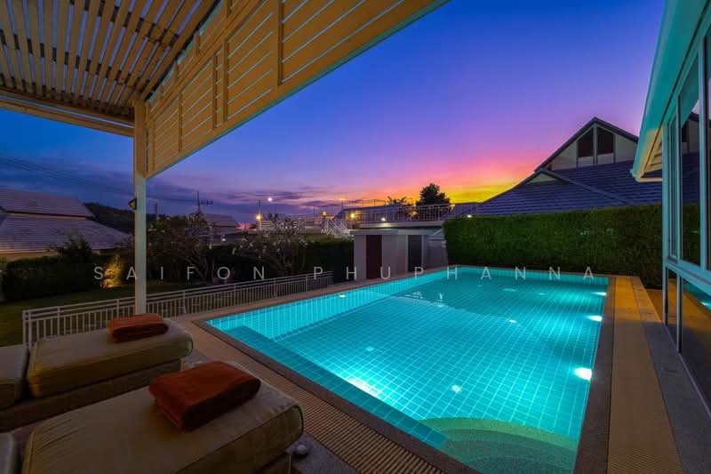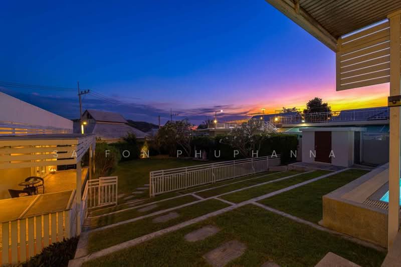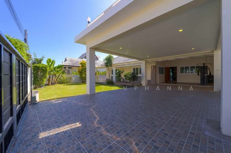 ภาพรวมวิลล่าหรูพร้อมอยู่ในย่านทับใต้ หัวหิน วิลล่าส่วนตัวชั้นเดียวบนที่ดินกว้างประมาณ 1064 ตารางเมตร รองรับการอยู่อาศัยอย่างเป็นส่วนตัวมากขึ้น. พื้นที่ใช้สอยภายในประมาณ 236 ตารางเมตร ออกแบบเป็นบ้านพักอาศัยสไตล์ทันสมัยพร้อมตกแต่งครบ. ตัวบ้านตั้งอยู่ในโครงการที่อยู่อาศัยขนาดใหญ่รวมประมาณ 188 ยูนิต บรรยากาศเงียบสงบและเป็นระเบียบ. เหมาะสำหรับครอบครัวขนาดใหญ่เพราะมีห้องนอนถึง 5 ห้องและห้องน้ำ 4 ห้องใช้งานสะดวก. คุณสมบัติและจุดเด่นของตัวบ้าน ตัวบ้านเป็นบ้านเดี่ยวชั้นเดียวสไตล์โมเดิร์น มีพื้นที่ใช้สอยโปร่งโล่งด้วยผนังกระจกบานใหญ่. ภายในเป็นแบบเปิดโล่งเชื่อมต่อห้องนั่งเล่น ห้องรับประทานอาหาร และครัวทันสมัยพร้อมตู้บิลท์อินและไอแลนด์. ห้องนั่งเล่นมีโซฟาตัวใหญ่รูปตัวแอล เพดานฝ้าซ่อนไฟและไฟดาวน์ไลท์ให้บรรยากาศอบอุ่น. ทุกห้องนอนปูพื้นลายไม้ มีหน้าต่างบานใหญ่รับแสงธรรมชาติ พร้อมตู้เสื้อผ้าบิลท์อินและโซนแต่งตัวแบบวอล์กอินในบางห้อง. ห้องน้ำออกแบบสไตล์โมเดิร์น มีเคาน์เตอร์อ่างล้างหน้าคู่ ฝักบัวเรนชาวเวอร์ ห้องอาบน้ำกระจกกั้นแยกส่วนเปียกแห้งชัดเจน. รายละเอียดสำคัญของพื้นที่ใช้สอยและสวน บ้านหลังนี้มาพร้อมโรงจอดรถขนาดใหญ่แบบมีหลังคา ปูพื้นกระเบื้องและติดไฟฝ้าเพดานสว่างทั่วถึง. พื้นที่สวนรอบบ้านจัดภูมิทัศน์อย่างดี มีสนามหญ้า ทางเดินหิน และต้นไม้ใหญ่ให้ร่มเงา. มีมุมพักผ่อนกลางแจ้งหลายจุด เช่น ชานระเบียงหน้าบ้าน ลานนั่งเล่นใต้หลังคา และเฉลียงแบบโปร่ง. ยังมีเคาน์เตอร์ซิงก์และจุดล้างลานกลางแจ้งพร้อมพื้นที่เตรียมอาหารและมุมปิ้งย่างสะดวกต่อการจัดงานสังสรรค์. ด้านบนมีดาดฟ้าพร้อมพื้นที่นั่งเล่น มองเห็นบรรยากาศรอบบ้านและรับลมยามเย็น. ทำเลและบรรยากาศรอบโครงการ ที่ตั้งอยู่ในย่านทับใต้ของอำเภอหัวหิน บรรยากาศเป็นโซนที่อยู่อาศัยเงียบสงบและเป็นส่วนตัว. พื้นที่โดยรอบเป็นบ้านพักอาศัยสวยงามและสวนจัดแต่งเป็นขั้นบันไดให้ความรู้สึกเป็นรีสอร์ต. ถนนภายในโครงการกว้างขวางและมีรั้วรอบขอบชิดช่วยเพิ่มความปลอดภัย..