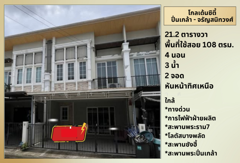 โกลเด้นซิตี้ จรัญ-ปิ่นเกล้า 4 นอน 4 น้ำ ทาวน์เฮาส์จรัญบางกรวย