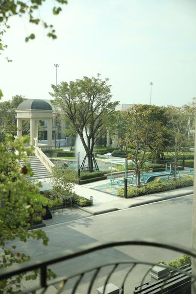 ระเบียงห้องนอนหันหน้าเข้าหาสวนของโครงการ ตกแต่งสวยงามครบครันพร้อมเครื่องใช้ไฟฟ้า พร้อมอยู่ทันที