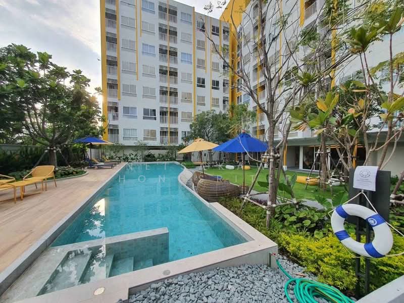 เฮย์ หัวหิน (Hay Hua Hin) โครงการคอนโดมิเนียม 8 ชั้น จำนวน 1 อาคาร ใกล้หัวหิน มาร์เก็ตวิลเลจประมาณ 2.8 กิโลเมตร เป็นผลงานการพัฒนาโครงการจากบริษัท แสนสิริ จำกัด (มหาชน) โครงการนี้มีเนื้อที่ทั้งหมดประมาณ 1.6 ไร่ จำนวน 252 ยูนิต พื้นที่ใช้สอยตั้งแต่ 24.50-37.75 ตารางเมตร ขนาด 1-2 ห้องนอน 1 ห้องน้ำ พร้อมสิ่งอำนวยความสะดวก เช่น ห้องออกกำลังกาย สระว่ายน้ำ และระบบรักษาความปลอดภัยได้มาตรฐาน เป็นต้น โดยโครงการนี้ก่อสร้างแล้วเสร็จในปี 2566 และมีลักษณะการถือครองแบบขายขาด ตัวโครงการตั้งอยู่ติดถนนเพชรเกษม ไม่ไกลจากแหล่งอำนวยความสะดวก โดยในรัศมีไม่เกิน 9 กิโลเมตรรอบโครงการ จะพบสถานที่น่าสนใจ เช่น สวนน้ำวานา นาวา วอเทอร์ จังเกิล, ซิเคด้า มาร์เก็ต หัวหิน, แทมมารีน มาร์เก็ต หัวหิน, หัวหิน มาร์เก็ตวิลเลจ, โรงเรียนภัทราวดี หัวหิน, มหาวิทยาลัยเทคโนโลยีราชมงคลรัตนโกสินทร์ วิทยาเขตวังไกลกังวล, โรงพยาบาลกรุงเทพหัวหิน, โรงพยาบาลซานเปาโล และโรงพยาบาลหัวหิน เป็นต้น การเดินทางเข้าออกโครงการ สามารถใช้ถนนเพชรเกษม ห่างจากโครงการประมาณ 270 เมตร, ถนนนเรศดำริห์ ห่างจากโครงการประมาณ 3.8 กิโลเมตร และถนนสระสรง ห่างจากโครงการประมาณ 4.1 กิโลเมตรได้ และจะพบถนนเลี่ยงเมืองชะอำ-ปราณบุรีในระยะทางประมาณ 17 กิโลเมตรด้วย เฮย์ หัวหิน (Hay Hua Hin) ออกแบบภายใต้แนวคิด Let’s say “HAY!” โดยให้ความสำคัญกับความสุข และความสนุกสนานที่ไม่มีวันหยุดนิ่งของคนรุ่นใหม่ ตัวอาคารดีไซน์โมเดิร์น คุมโทนด้วยสีขาวตัดด้วยสีเหลืองสด ให้บรรยากาศที่ดูเรียบง่ายแต่มีความสนุกสนานซ่อนอยู่ในตัว ตกแต่งด้วยต้นไม้สีเขียวรอบ ๆ โครงการ ช่วยให้ร่มเงา จัดสวนในพื้นที่ส่วนกลางดีไซน์สมัยใหม่ พร้อมกับตกแต่งส่วนกลางโดยการเน้นสีเหลืองและสีน้ำเงินตามจุดต่าง ๆ เช่น ร่มริมสระว่ายน้ำ เก้าอี้ และหมอน เป็นต้น เพื่อความสวยงามและดึงดูดสายตาได้เป็นอย่างดี ให้ผู้อยู่อาศัยได้สัมผัสถึงบรรยากาศการพักผ่อนสไตล์รีสอร์ทใจกลางหัวหิน ภายในห้องใช้การฉาบเรียบสีขาว และมีการใช้ลวดลายไม้มาตกแต่งอย่างเป็นธรรมชาติ ไม่ว่าจะเป็นการปูพื้น, ลวดลายของประตู และเฟอร์นิเจอร์ Built-in ช่วยให้บรรยากาศภายในดูสบายตา และทำให้ผู้อยู่อาศัยสามารถตกแต่งห้องเพิ่มเติมตามสไตล์ที่ชอบได้ง่าย มีการจัดสรรพื้นที่ใช้สอยให้เดินเชื่อมต่อถึงกันได้อย่างลงตัว ตอบโจทย์ทุกการใช้งานของคนรุ่นใหม่ พร้อมระเบียงส่วนตัวให้ทุกยูนิต โดยแบบห้องในโครงการมีทั้งหมด 5 แบบด้วยกัน คือ 1A พื้นที่ใช้สอย 24.50-24.75 ตารางเมตร ขนาด 1 ห้องนอน 1 ห้องน้ำ 1 ห้องนั่งเล่น 1 พื้นที่ประทานอาหาร 1 พื้นที่ท