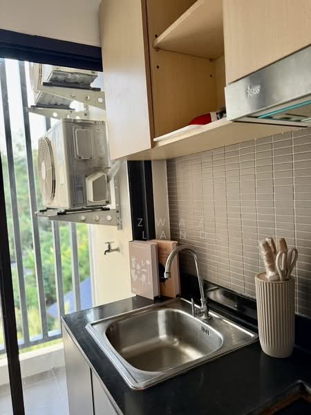 ตัวห้องรับแสงธรรมชาติได้ดี ทำให้บรรยากาศภายในสบายตาและน่าอยู่ พร้อมฟังก์ชันครบในพื้นที่เดียว ทั้งมุมนั่งเล่น พื้นที่พักผ่อน และครัวขนาดกะทัดรัด