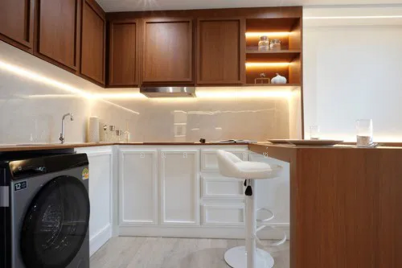 ห้องได้รับการ รีโนเวทใหม่ทั้งยูนิต ดีไซน์เรียบหรูสไตล์โมเดิร์นโทนอบอุ่น ใช้วัสดุคุณภาพ เช่น พื้นไม้ SPC พร้อมเฟอร์นิเจอร์บิวท์อินและเครื่องใช้ไฟฟ้าครบชุด สามารถเข้าอยู่ได้ทันที