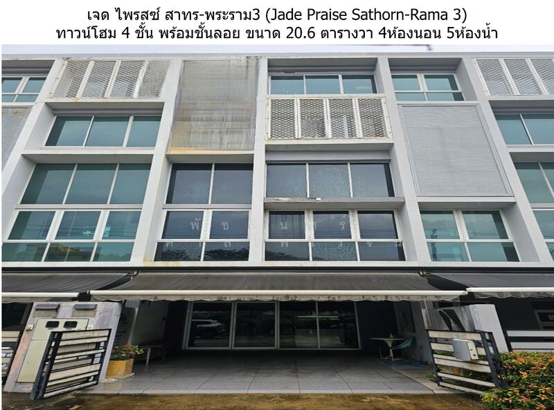 ขายทาวน์โฮม 4 ชั้น เจด ไพรสซ์ สาทร-พระราม3 (Jade Praise Sathorn-Rama 3) ขนาด 20.6 ตารางวา 4ห้องนอน