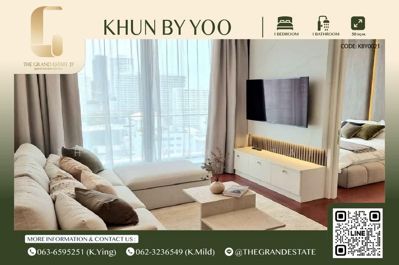 โครงการคอนโดมิเนียม KHUN by YOO เป็นคอนโดมิเนียม 1 อาคาร จำนวน 27 ชั้น สร้างสรรค์โดย บริษัท แสนสิริ จำกัด (มหาชน) ตั้งอยู่บน 139 ซอย สุขุมวิท 55, แขวง คลองตันเหนือ เขต วัฒนา กรุงเทพมหานคร เนื้อที่โครงการ 1 ไร่ จำนวน 148 ยูนิต โดยมีพื้นที่ใช้สอย 41-302 ตารางเมตร ประกอบไปด้วยห้อง 1 Bedroom ห้อง 2 Bedroom ห้อง 3 Bedroom และ Penthouse ลักษณะการถือครองแบบขายขาดเป็นโครงการที่เกิดจากความคิดที่จะสร้างโครงการ Branded Condominium จึงจับมือกับ Yoo Design Studio บริษํทดีไซน์ระดับโลก และ Philippe Starck เพื่อรังสรรค์โครงการที่มากกว่าคำว่าที่อยู่อาศัย เพื่อเจาะกลุ่มคนรุ่นใหม่ที่หลงใหลในงานดีไซน์อันผสมผสานงานศิลปะ ทำเลที่ตั้งของโครงการตั้งอยู่บนย่านแห่งแสงสีของย่านทองหล่อ หรือ สุขุมวิท 55 ตั้งแต่ต้นถึงท้ายซอย จุดศูนย์รวมของสถานที่ไลฟ์สไตล์ สนองความต้องการของคนรุ่นใหม่ และต่างอัดแน่นไปด้วยคอมมูนิตี้มอลล์นับสิบ ประกอบกับรอบโครงการ ยังถูกรายล้อมไปด้วย ร้านอาหาร โรงเรียน โรงพยาบาล ห้างสรรพสินค้า มากมายอย่างเช่น โรงเรียนนานาชาติเวลส์ ทองหล่อโรงพยาบาลคามิลเลียนโรงพยาบาลสมิติเวช สุขุมวิทภายในโครงการมีจำนวน 148 ยูนิต จากเนื้อที่โครงการกว่า 1 ไร่ การออกแบบสถาปัตยกรรมที่แสดงถึงเอกลักษณ์ความทันสมัยของย่าน ทองหล่อ จึงนำแนวคิด Industrial Heritage มาใช้ในการออกแบบตัวอาคาร โดยเป็นลักษณะปูนเปลือย หินขัด และทองแดง มาเป็นวัตถุดิบหลัก โดยเฉพาะบริเวณ Main Entrance จึงทำให้สะดุด ประกอบกับมีการเล่นสีสันคอนทราสต์ ทั้งโครงการ รวมไปถึงในห้องที่ตกแต่งด้วยเฟอร์นิเจอร์ระดับโลก ซึ่งเป็นสไตล์ของ Philippe Starck ทำให้ผู้เข้าพักยังคงส่วนตัวและความสนุกไว้ในเวลาเดียวกัน พื้นที่ใช้สอย 50 ตารางเมตร พื้นที่ใช้สอย 82 ตารางเมตร พื้นที่ใช้สอย 149 ตารางเมตร พื้นที่ใช้สอย 294 ตารางเมตรการเดินทางมายังโครงการสามารถทำได้หลายวิธี ทั้งรถยนต์ส่วนตัวและรถไฟฟ้า BTS สายสุขุมวิท ซึ่งหากไม่อยากเดินก็สามารถเรียกรถโดยสารที่หน้าปากซอยเข้าไปที่โครงการได้เลย ตามความสะดวก โดยสามารถเดินทางมาที่โครงการได้ตามเส้นทางต่อไปนี้จากรถไฟฟ้า BTS สถานีทองหล่อ ระยะทาง 1 กิโลเมตรจากถนนสุขุมวิท ระยะทาง 1.1 กิโลเมตรจากถนนทองหล่อ ระยะทาง 30 เมตรจากถนนเพชรบุรี ระยะทาง 1.3 กิโลเมตร เรียบหรู ดูดีมีระดับ ที่คอยตอบรับผู้พักอาศัยทุกท่านราวกับเป็นงานศิลปะ บรรยากาศของล็อบบี้ นำหิน อ่อนมาใช้คู่กับ Raw concrete ตกแต่งด้วยเฟอร์นิเจอร์ที่ ทั้งดีไซน์ และถูกเลือกสรรโดย Philippe Starck จุดเด่นอยู่ที่ Chandelier สีส้มขนาดใหญ่ เป็นระบบน้ำอุ่น ที่มีความยาวถึง 30 เมตร ที่ให้คุณชมวิวไปพร้อมๆ กับว่ายน้ำได้ในเวลาเดียวกัน ชื