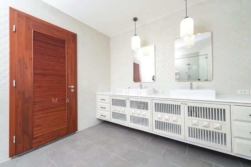 �� ห้องครัวมิกซ์สไตล์ยุโรป-ไทยแบบเปิดโล่ง เชื่อมต่อโซนรับประทานอาหารและโซนนั่งเล่น พร้อมอุปกรณ์ไฟฟ้าครบครัน เช่นทีวี ขนาด 75 นิ้ว ตู้เย็น (4 ประตู) เตาแก๊ส ฮู้ด ซิ้งค์ล้างจาน เครื่องล้างจาน เคาร์เตอร์มินิบาร์ และชุดโต๊ะรับประทานอาหาร สำหรับ 8 ท่าน
