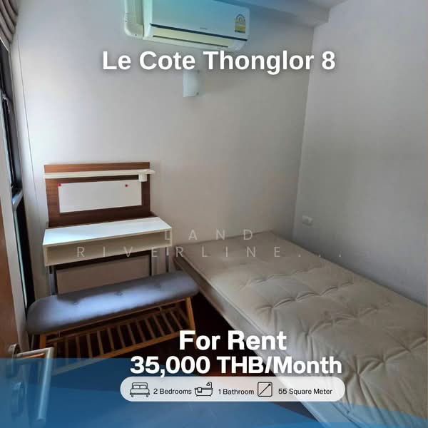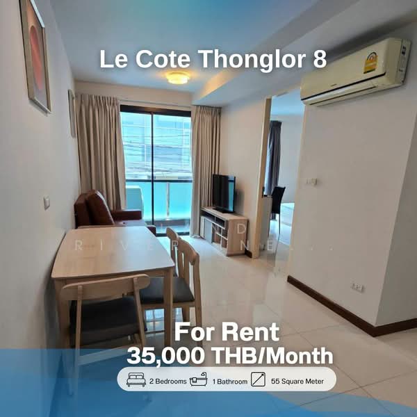 โครงการคอนโดมิเนียม Le cote thonglor 8 คอนโดมิเนียม Low Rise 8 ชั้น 1 อาคาร สร้างสรรค์ บริษัท ซิตี้ รีสอร์ท แลนด์ จำกัด ตั้งอยู่ บนซอยทองหล่อ 8 ถนนสุขุมวิท 55 แขวงคลองตันเหนือ เขตวัฒนา เนื้อที่โครงการ 3 งาน 11.00 ตารางวา จำนวน 99 ยูนิต โดยมีพื้นที่ใช้สอย 30.50-102.5 ตารางเมตรประกอบด้วยห้อง 1 Bedroom, 2 Bedrooms, Duplex และ Penthouse ลักษณะการแบบขายขาด เป็นคอนโดมิเนียมที่อยู่ใจกลางทองหล่อ มาพร้อมสิ่งอำนวยความสะดวกครบครัน ทำเลที่ตั้งโครงการตั้งอยู่บนทำเลศักยภาพย่านใจกลางทองหล่อ มีความสะดวกสบายในการเดินทาง เพราะเชื่อมต่อถนนสายหลักสำคัญๆ มากมาย อีกทั้งยังรายล้อมด้วยแหล่งท่องเที่ยว ช็อปปิ้ง แหล่งแฮงค์เอ้าท์ และร้านอาหารอร่อยอีกมากมาย เช่น J Avennue และ DONKI Mall Thonglor นอกจากนี้ยังสถานศึกษาชื่อดังอย่าง โรงเรียนนานาชาติเอกมัย และ โรงเรียนนานาชาติ Bangkok Prep รวมไปถึงสถานความปลอดภัยอย่างโรงพยาบาลชั้นนำที่อยู่ใกล้ๆอีกด้วยภายในโครงการมีจำนวน 99 ยูนิต จากเนื้อที่โครงการ 3 งาน 11.00 ตารางวา โดยตัวโครงการออกแบบจากแนวคิดอันล้ำหน้า พิถีพิถันทั้งการดีไซน์ มีความทันสมัยและใช้งานได้จริง ตัวห้องมีทั้งหมด 4 Type การเลือกวัสดุในการก่อสร้างคัดสรรอย่างดีขนาดพื้นที่ใช้สอย 30.50-53 ตารางเมตรขนาดพื้นที่ใช้สอย 48.50-81.5 ตารางเมตร ขนาดพื้นที่ใช้สอย 70.5 ตารางเมตรขนาดพื้นที่ใช้สอย 78.5-102.5 ตารางเมตรโครงการตั้งอยู่ซอยทองหล่อ 8 เชื่อมถนนสายสำคัญได้หลากหลายเส้นทาง สามารถเลือกเดินทางด้วยรถยนต์ส่วนตัว หรือรถสาธารณะ โดยสามารถเดินทางมาที่โครงการได้ตามเส้นทางต่อไปนี้จากรถไฟฟ้า BTS สถานีทองหล่อ ระยะทาง 1.1 กิโลเมตรจากถนนทองหล่อ ระยะทาง 450 เมตรจากถนนสุขุมวิท ระยะทาง 1.5 กิโลเมตรจากถนนเอกมัย ระยะทาง 1.6 กิโลเมตรจากถนนเพชรบุรีตัดใหม่ ระยะทาง 3.1 กิโลเมตรจากทางด่วนศรีรัช ระยะทาง 4.2 กิโลเมตรพื้นที่รองรับลูกบ้านและแขกด้านนอกขนาดใหญ่ สามารถเทควิวเมืองเหมาะสำหรับเด็กขนาดใหญ่ มีเครื่องเล่นและอุปกรณ์ครบครับ ระบบควบคุมการเข้า-ออกที่สะดวกสบายและปลอดภัยติดตั้งกล้องวงจรปิดรอบโครงการและภายในโครงการ มีเจ้าหน้าที่รักษาความปลอดภัยตลอด 24 ชั่วโมงเนื่องจากโครงการตั้งอยู่ในทำเลสุดไพร์มอย่างทองหล่อ จะเห็นได้ว่าบริเวณโดยรอบถูกรายล้อมไปด้วยสถานที่แนวไลฟ์สไตล์ระดับ Hi-end มีร้านอาหารอร่อยๆติดอันดับหลายร้าน แหล่งช้อปปิ้งชั้นนำ และยังรวมไปถึงแหล่ง Hangout ของคนทุกระดับ เรื่องการเดินทางก็สะดวกครบครัน สามารถเชื่อมต่อไปยังถนนสายสำคัญได้หลากหลายเส้นทาง โดยแหล่งใกล้โครงการที่น่าสนใจมีดังต่อไปนี้จากรถไฟฟ้า BTS สถานีทองหล่อ ระยะทาง 1.1 กิโลเมตรThe American Sch