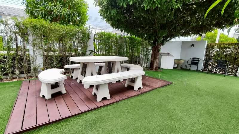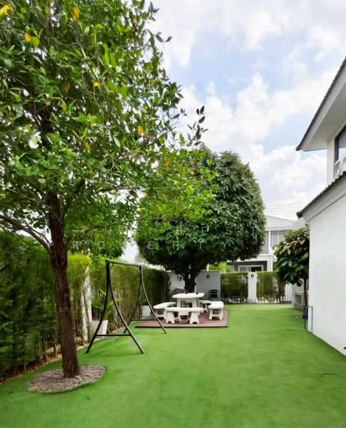 พื้นที่สีเขียว ปูสนามหญ้าเทียมให้รอบบ้าน ต้นไม้รอบบ้าน สวยสะอาดตา ดูแลง่าย มีพื้นที่ให้เด็กๆ วิ่งเล่น