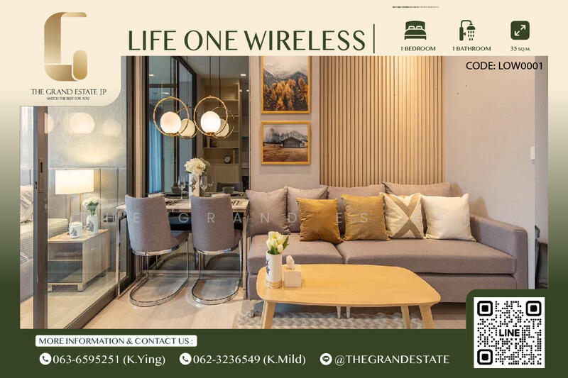 โครงการคอนโดมิเนียม life one wireless คอนโดมิเนียม High Rise 43 ชั้น สร้างสรรค์โดย บริษัท เอพี (ไทยแลนด์) จํากัด (มหาชน) ตั้งอยู่ ถนนวิทยุ แขวงลุมพินี เขตปทุมวัน เนื้อที่โครงการ 4-2-47.1 ไร่ แบ่งเป็น 1,344 ยูนิต โดยมีพื้นที่ใช้สอย 34-63 ตาราเงมตร ประกอบด้วยห้อง Studio, 1 Bedroom และ 2 Bedroom ลักษณะการแบบขายขาด เป็นคอนโดมิเนียมที่อยู่ใจกลางเมือง มีร้านสะดวกซื้อภายในโครงการ ตลอด 24 ชั่วโมง พร้อมสิ่งอำนวยความสะดวกครบครัน ทำเลที่ตั้งโครงการเป็นทำเลที่มีศักยภาพสูง อยู่ใจกลางเมือง เชื่อมต่อระหว่างถนนเพชรบุรี-สุขุมวิท-เพลินจิตไปจนถึงถนนพระราม 4 มีการคมนาคมขนส่งที่สมบูรณ์พร้อม เดินทางไปไหนมาไหนก็สะดวก ใกล้รถไฟฟ้า BTS สถานีเพลินจิต เพียง 600 เมตร รายล้อมด้วยปัจจัยอำนวยความสะดวก ไม่ว่าจะเป็น Central Embassy , Central ชิดลม และอาคารสำนักงานชั้นนำระดับไฮเอ็นด์อีกมากมาย เช่น สำนักงานใหญ่ธนาคารกรุงศรีอยุธยา , อาคารสินธร เป็นต้น นอกจากนี้ยังอุ่นใจและปลอดภัย ด้วย BDMS Wellness Clinic ศูนย์สุขภาพแบบครบวงจรภายในโครงการมีจำนวน 1,344 ยูนิต จากเนื้อที่โครงการ 4-2-47.1 ไร่ โดยตัวโครงการถูกออกแบบให้มีกลิ่นอายของความเป็นไทยผสมกับความโมเดิร์นแบบชาติตะวันตก มาพร้อมสิ่งอำนวยความสะดวก และพื้นที่ส่วนกลางที่หลากหลาย ส่วนห้องพักมีหลากหลาย Type ให้เลือก และจะแตกต่างจากที่อื่นๆ เพราะส่วนใหญ่จะเน้นเป็นห้องหน้ากว้าง และสามารถปรับเปลี่ยนฟังก์ชั่นได้ตามความต้องการ ตอบโจทย์การใช้งานได้อย่างเต็มที่ ขนาดพื้นที่ใช้สอย00 – 28.00 ตารางเมตร ขนาดพื้นที่ใช้สอย 00-43.00 ตารางเมตร ขนาดพื้นที่ใช้สอย 45.00-63.00 ตารางเมตรโครงการตั้งอยู่ติดถนนวิทยุ ระหว่างถนนเพชรบุรี-สุขุมวิท-เพลินจิตไปจนถึงถนนพระราม 4 สามารถเลือกเดินทางด้วยรถยนต์ส่วนตัว หรือรถสาธารณะ โดยสามารถเดินทางมาที่โครงการได้ตามเส้นทางต่อไปนี้จากทางางด่วนเฉลิมมหานคร ระยะทาง 250 เมตรจากรถไฟฟ้า BTS สถานีเพลินจิต ระยะทาง 600 เมตรจากถนนเพชรบุรี ระยะทาง 2 กิโลเมตรจากถนนเพลินจิต ระยะทาง 2.6 กิโลเมตรจากถนนสุขุมวิท ระยะทาง 4.5 กิโลเมตร โถงต้อนรับ ประกอบด้วย Semi Outdoor Lobby สำหรับลูกบ้านใช้นั่งพักผ่อนสวนลอยฟ้าบรรยากาศธรรมชาติ มีบ่อน้ำและต้นไม้นานาชนิดพื้นนั่งพักผ่อนสำหรับดูหนัง ขนาดใหญ่ มีอุปกรณ์ในการออกกำลังครบครัน สวนลอยฟ้าชั้นบนสุด สามารถชมวิวเมืองได้รอบด้านสระว่ายน้ำกลางแจ้งขนาดยาวกว่า 35 เมตร พร้อม Jacuzzi สำหรับแช่ให้ผ่อนคลายพื้นที่สังสรรค์ พร้อมชมวิวเมือง ระบบควบคุมการเข้า-ออกที่สะดวกสบายและปลอดภัยติดตั้งกล้องวงจรปิดรอบโครงการและภายในโครงการ มีเจ้าหน้าที่รักษาความปลอดภัยตลอด 24 ชั่วโมงพ