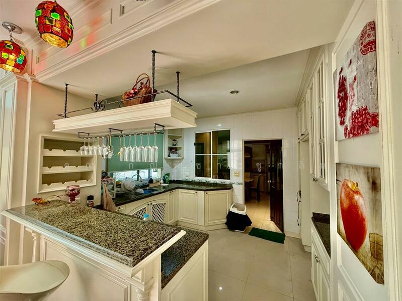 พื้นปูกระเบื้องแกรนิตโต้ ครัวบิวท์อิน มีบาร์ ผ้าม่าน ต่อเติมศาลาเพิ่ม