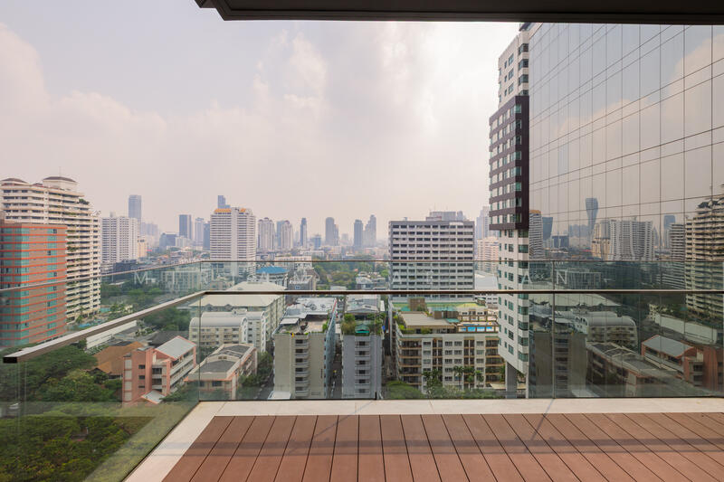 ห้องชุดนี้มีลิฟต์ส่วนตัวและระเบียงขนาดใหญ่ ตกแต่งบางส่วนแล้ว