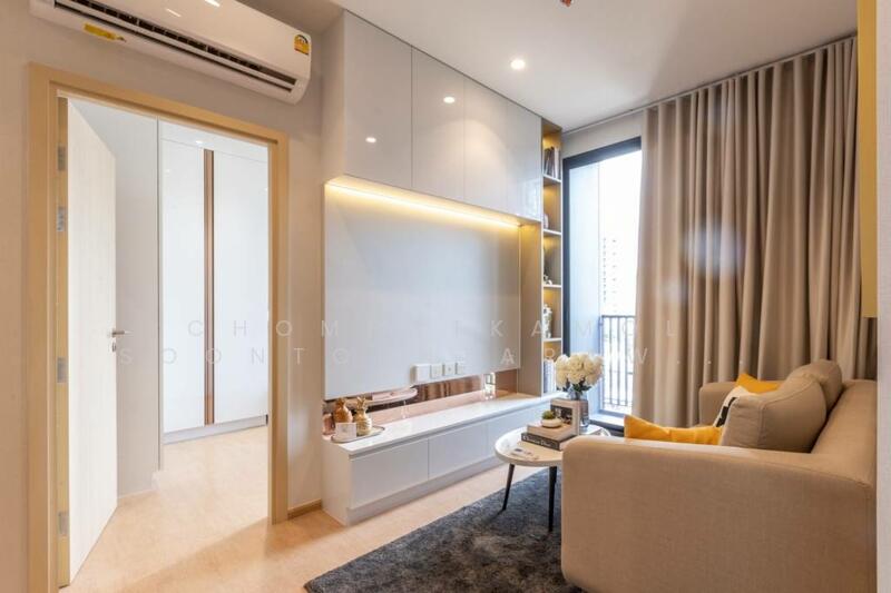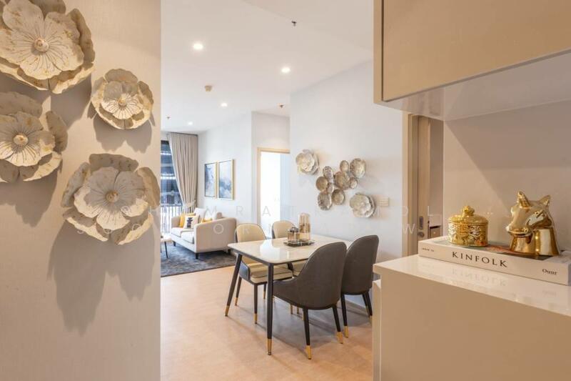 This 59.14 square meter freehold condo offers a modern city home in MARU Ekkamai 2. The unit sits on the 9th floor in a high-rise project with 32 floors and 333 units. It features a functional two bedroom, two bathroom layout with an open-plan living and dining area. Fully furnished interiors present a neutral contemporary style with warm accents and quality finishes.