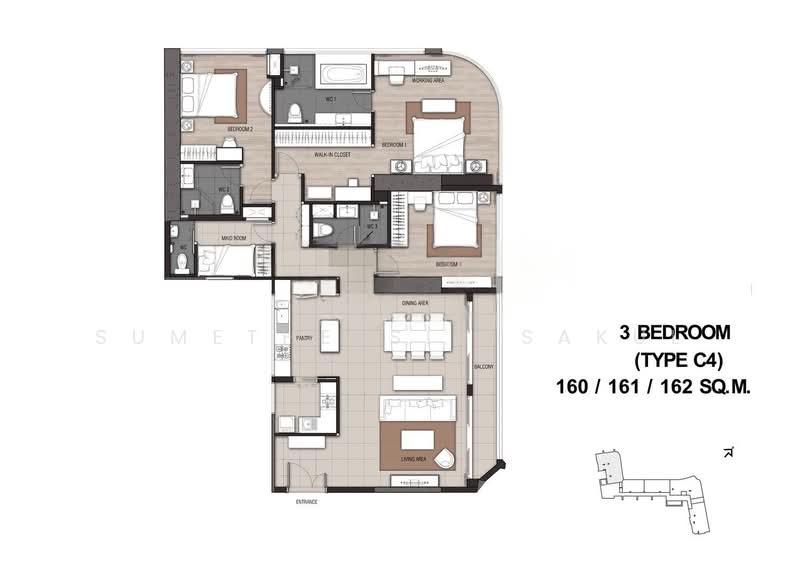ขาย คอนโดตกแต่งพร้อมอยู่ 3 ห้องนอน 3 ห้องน้ำ ขนาด 159.9 ตารางเมตร ชั้น 30, โครงการ แม่น้ำ เรสซิเดนท์ ซึ่งตั้งอยู่ในเขตบางคอแหลม