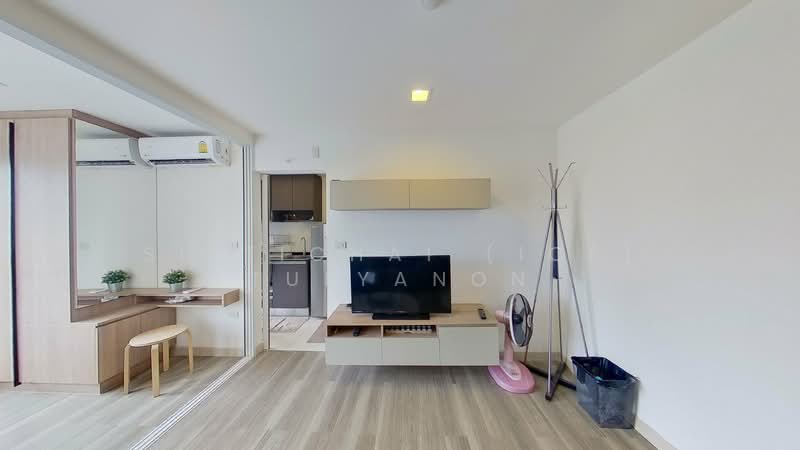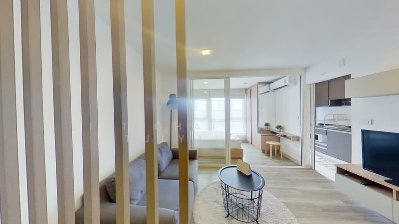 ภายในห้องมีการจัดสรรพื้นที่อย่างลงตัว พร้อมแสงธรรมชาติที่ช่วยให้บรรยากาศดูโปร่งโล่งและน่าอยู่ พื้นที่นั่งเล่นเชื่อมต่อกับครัวขนาดกะทัดรัดที่ใช้งานได้จริง เหมาะสำหรับการใช้ชีวิตของคนเมืองที่ต้องการความคล่องตัว ห้องนอนแยกเป็นสัดส่วน มีพื้นที่เก็บของ และให้ความเป็นส่วนตัวในการพักผ่อน