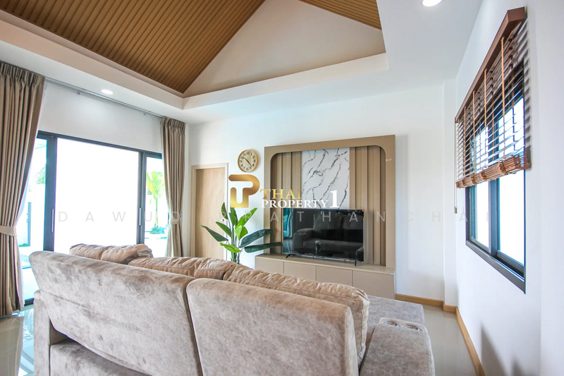 วิลล่าหลังนี้ พร้อมเข้าอยู่ทันที ออกแบบด้วยสไตล์โมเดิร์น พื้นที่ใช้สอยแบบเปิด โปร่งสบาย และมีแสงธรรมชาติเข้ามาอย่างเต็มที่ สระว่ายน้ำและสวนส่วนตัวช่วยสร้างบรรยากาศผ่อนคลาย เหมาะสำหรับการใช้ชีวิตในสไตล์ทรอปิคอลของหัวหิน