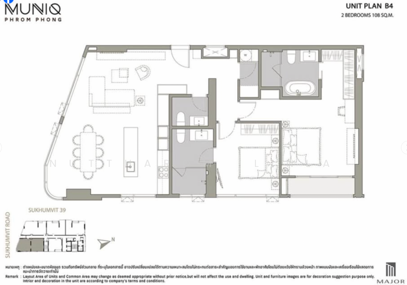ขนาดพื้นที่ใช้สอยของยูนิต Muniq Phrom Phong : มิวนีค พร้อมพงษ์ คือ 108 ตร.ม..