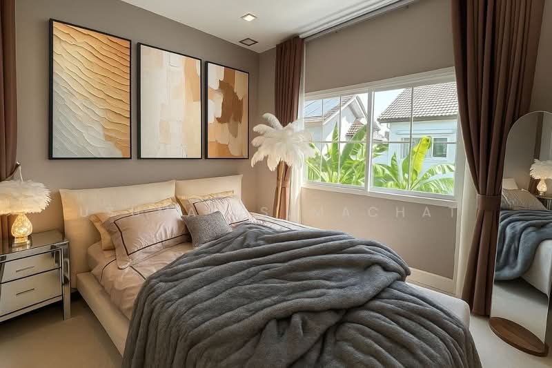 Ultra-luxury villa with top Italian designer furniture, featuring grand piano, Princess Rond bed, queen wedding bed & large crystal chandelier - located in a large scenic community with premium natural environment , prime Bangna core area.