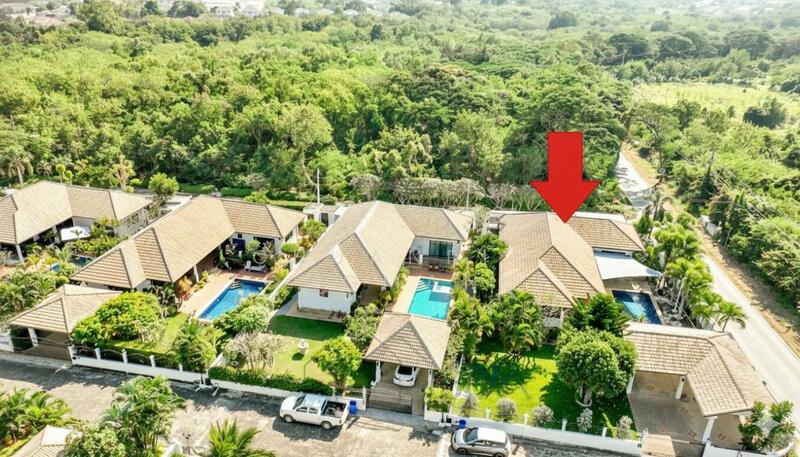 Nature Valley Estates is situated in the exclusive suburbs of Hua Hin. It’s Just 10 minutes by car from the centre of Hua Hin and beaches! For the golfers, it is just 5.3 kms from Black Mountain Golf course and only 15 mins drive to seven more World Class International Golf Courses. “L” shaped villa with generous terrace, an 11 by 4 meters swimming pool and tropical garden. 3 Bedrooms and 3 bathrooms, Living area 250 sqm. and Land area 872 sqm. Maintenance fee 2,000 Baht per month.