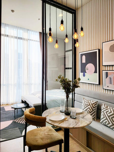 สตูดิโอ มีกั้นห้อง แต่งสวยๆ ชั้นสูง คอนโดใกล้ BTS พร้อมพงษ์ 500 ม.
