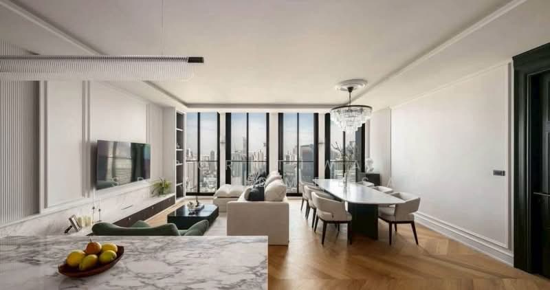 This spacious 3-bedroom residence offers a generous and elegant layout with a large living and dining area, ideal for families or executives seeking comfortable luxury living in central Bangkok. Floor-to-ceiling windows maximise natural light while offering impressive city skyline views.