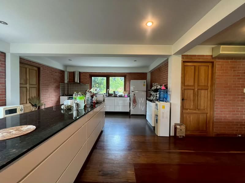บริเวณชั้น 1 : 1 ห้องทำงาน ,1 ห้องนอน 2 ห้องน้ำ มีครัวบิ้วอินไอส์เเลนด์ สไตล์โมเดิร์น
