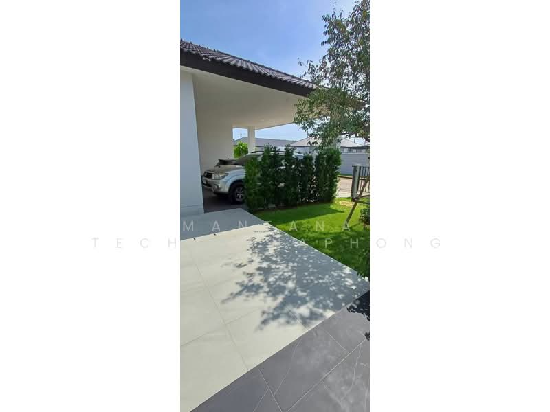 Panalee Banna Village Panalee Banna village exudes timeless charm with its captivating blend of simplicity and modern architecture. Nestled amidst breathtaking natural surroundings, this village boasts an array of beautifully designed houses that epitomize exemplary craftsmanship. One such house stands out, a single-floor marvel that showcases the pinnacle of contemporary design. Upon entering, you'll be greeted by flexible living spaces that seamlessly flow together, creating an inviting and versatile atmosphere. With three spacious bedrooms and two elegant bathrooms, this house offers both comfort and style. Additionally, a dedicated working space provides the perfect environment for productivity, while a well-appointed dining area beckons for shared meals and cherished memories. The kitchen serves as the heart of the home, boasting exquisite marble surfaces and state-of-the-art Hafele appliances. An island breakfast bar offers a convenient spot for casual dining or entertaining guests. As you glide through the glass doors, a mesmerizing backyard garden unfolds before your eyes, providing a peaceful sanctuary and enchanting views of the surrounding nature. Panalee Banna village invites you to experience the harmonious fusion of contemporary design and natural beauty, offering a truly exceptional living environment for those seeking the perfect blend of style and tranquility.
