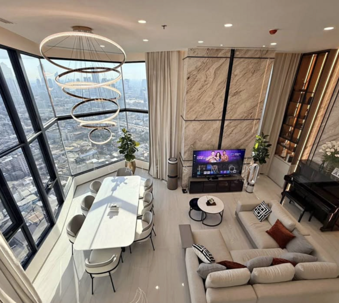 สัมผัสการอยู่อาศัยระดับสูงสุดกับเพนท์เฮาส์ 3 ห้องนอนบนชั้น 42 ที่โดดเด่นด้วยพื้นที่ Duo Space เพดานสูงถึง 4.2 เมตร พร้อมวิวเมืองและย่านสามย่านแบบพาโนรามา
