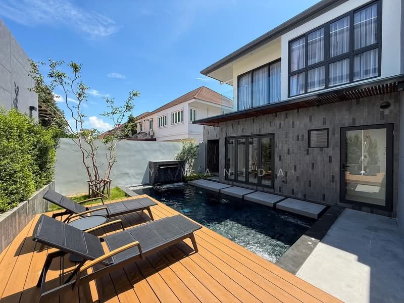 ภายนอกมีสระว่ายน้ำส่วนตัว ลานพักผ่อน และที่จอดรถในร่ม พร้อมระบบรักษาความปลอดภัยภายในโครงการที่ให้ความเป็นส่วนตัวสูง