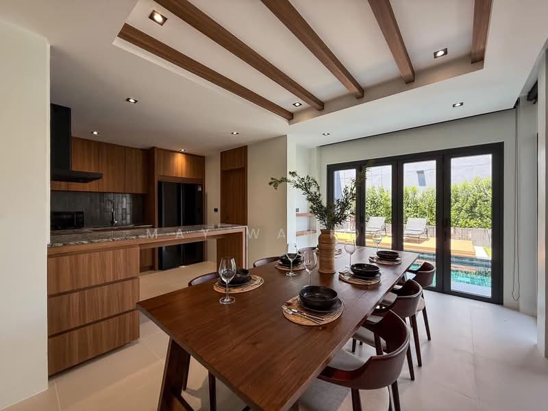ตัวบ้านโดดเด่นด้วยแปลนแบบเปิดที่เชื่อมต่อพื้นที่นั่งเล่น พื้นที่รับประทานอาหาร และครัวเข้าไว้ด้วยกันอย่างลงตัว ประตูบานเลื่อนกระจกขนาดใหญ่เปิดออกสู่สระว่ายน้ำส่วนตัวและสวนสีเขียว ทำให้บ้านโปร่งโล่งและรับแสงธรรมชาติได้ตลอดวัน เหมาะทั้งสำหรับการพักผ่อนหรือสังสรรค์กับคนใกล้ตัว
