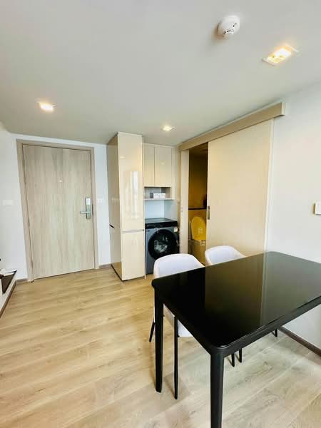 ครัวปิดติดระเบียง แยกเป็นสัดส่วน ตกแต่งสไตล์เรียบง่าย สะอาดตา พร้อมเฟอร์นิเจอร์ครบ เครื่องใช้ไฟฟ้าครบชุด แอร์ 2 เครื่อง สมาร์ททีวี 55 นิ้ว , ตู้เย็น, ไมโครเวฟ , เครื่องซัก–อบผ้าในตัว, ฟรี Wifi