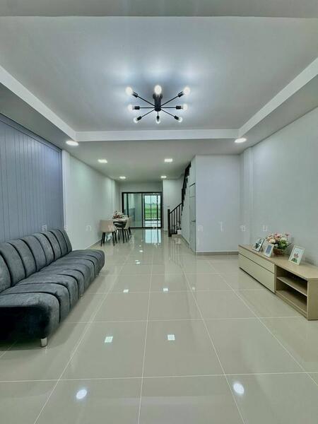 บ้านรีโนเวทใหม่ สวย พร้อมอยู่ ต่อเติมเทอเรสหน้าบ้าน และต่อเติมครัวแล้ว พร้อมเฟอร์นิเจอร์ หลังบ้านติดคลอง มีระเบียงหลังบ้านรับลม