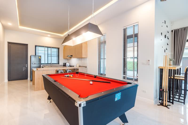 ตัวบ้านออกแบบเพื่อการใช้ชีวิตที่ผ่อนคลาย พื้นที่ภายในกว้างขวาง พร้อมห้องนั่งเล่นและรับประทานอาหารแบบเปิดโล่ง ครัวครบครัน พร้อมให้คุณทำอาหารรับประทานเองหรือสังสรรค์กับครอบครัวและเพื่อน ๆ ห้องนอนทุกห้องตกแต่งอย่างลงตัว ให้ความเป็นส่วนตัวและความสบายในทุกค่ำคืน ส่วนภายนอกมีเฉลียงนั่งเล่น สวน และสระว่ายน้ำ เหมาะสำหรับอาบแดด จัดปาร์ตี้ หรือพักผ่อนในบรรยากาศส่วนตัว