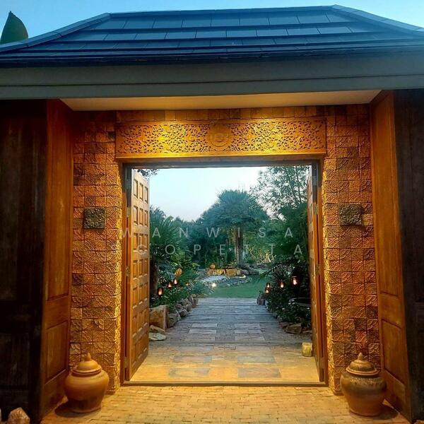 ภายนอกประกอบด้วย สระว่ายน้ำยาว 16 เมตร พร้อมจากุซซี่, สวนทรอปิคอลที่จัดแต่งอย่างสวยงาม และ ทะเลสาบส่วนตัวพร้อมน้ำตก ดอกบัว และศาลาริมน้ำ ให้บรรยากาศแบบรีสอร์ทส่วนตัว