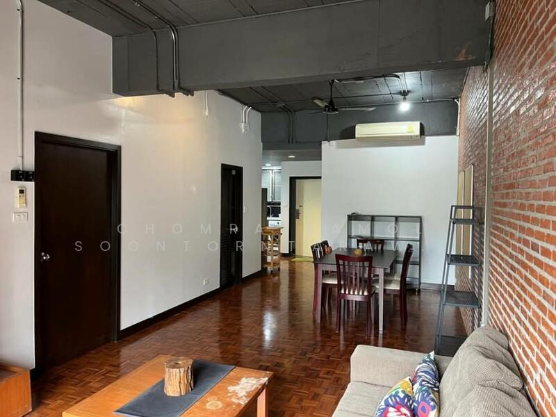 This 100 sqm condo on the 6th floor offers a bright industrial loft-style living space in Prasanmit Condominium, Khlong Toei Nuea, Wattana, Bangkok. The home presents a professional overview of open-plan design, high ceilings, and a modern urban atmosphere.