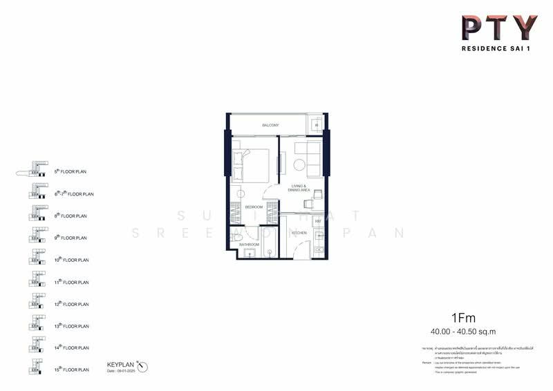 ขนาดพื้นที่ใช้สอยของยูนิต PTY Residence Sai 1 : พีทีวาย เรสซิเดนซ์ สาย 1 คือ 40 ตร.ม..