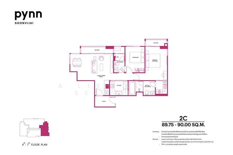 ขนาดพื้นที่ใช้สอยของยูนิต PYNN Soonvijai : พินน์ ศูนย์วิจัย คือ 90 ตร.ม..