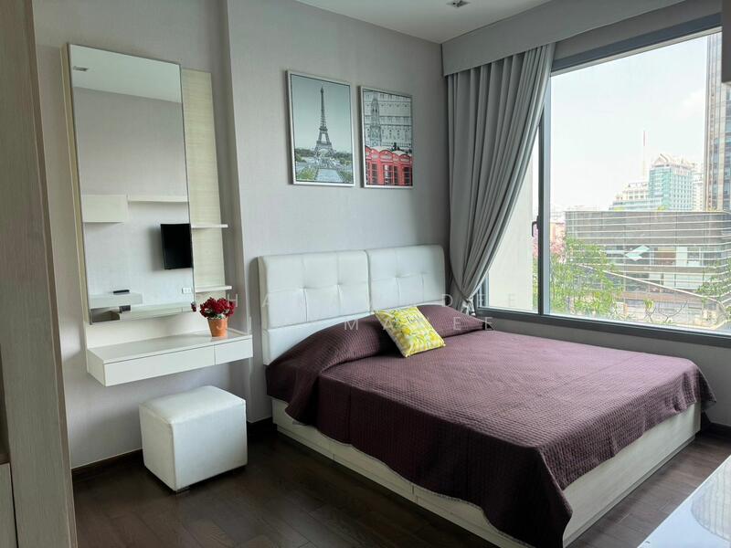 ให้เช่า คอนโดตกแต่งพร้อมอยู่ 1 ห้องนอน 1 ห้องน้ำ ขนาด 45 ตารางเมตร ชั้น 9, โครงการ คิว อโศก ซึ่งตั้งอยู่ในเขตราชเทวี ใกล้ BTS นานา