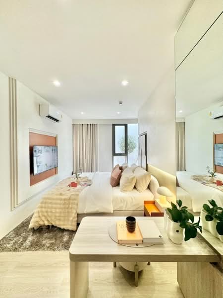 ยูนิตถูกออกแบบให้ใช้งานได้จริงในทุกวัน พื้นที่นั่งเล่นแบบโอเพนโปร่งสบาย ครัวยูนิตกะทัดรัดใช้งานสะดวก และห้องนอนทั้งสองห้องจัดวางลงตัวเพื่อความเป็นส่วนตัว เหมาะสำหรับคู่รัก ครอบครัวขนาดเล็ก หรือผู้ที่ต้องการห้องทำงานเพิ่มภายในบ้าน หน้าต่างบานใหญ่เปิดรับแสงธรรมชาติ ทำให้บรรยากาศภายในอบอุ่นและน่าอยู่