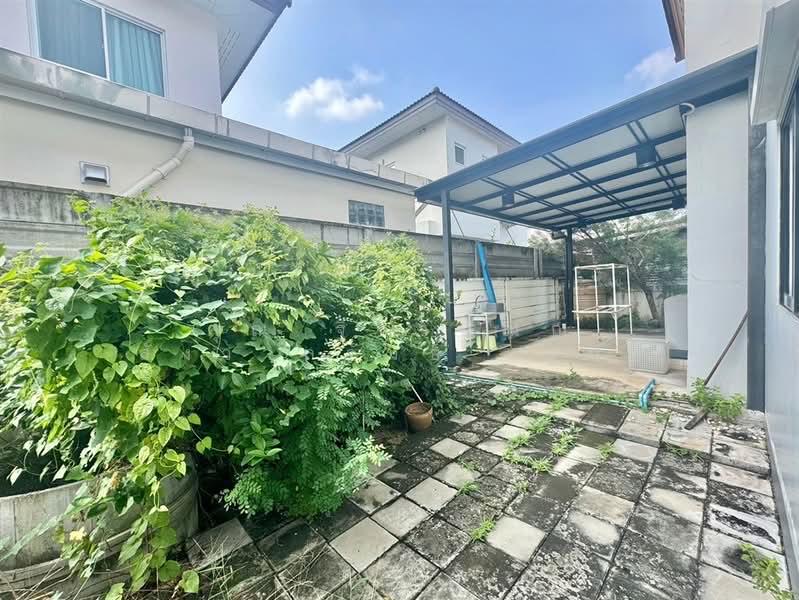 ต่อเติมหลังคาโรงจอดรถ ต่อเติมครัวหลังบ้านแบบเปิด พื้นที่รอบบ้านโล่ง สามารถเดินรอบบ้านได้ พื้นด้านบนปูพื้นลามิเนต มี 3 ห้องนอน 2 ห้องน้ำ
