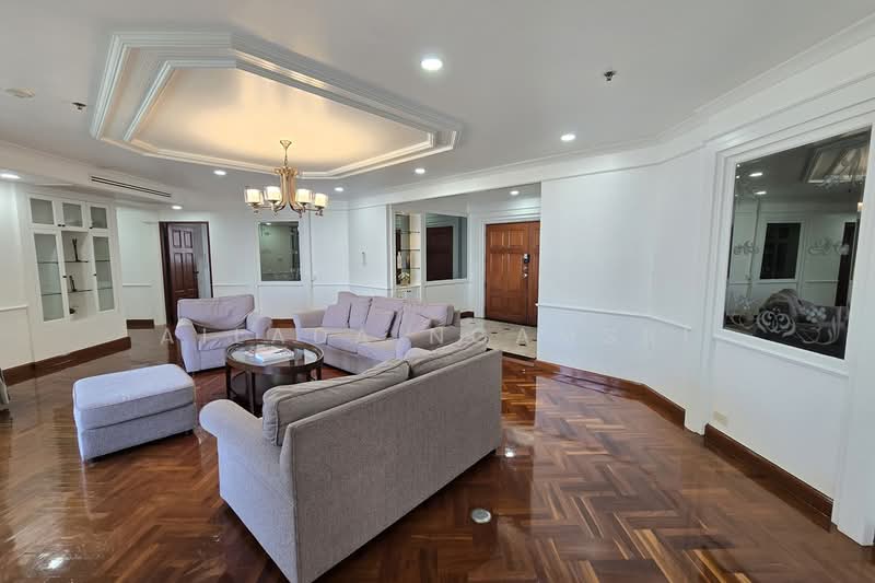 คอนโดขนาด 350 ตารางเมตรนี้ตั้งอยู่บนชั้นสูงและมีพื้นที่นั่งเล่นกว้างขวางสองแห่งพร้อมวิวเมืองที่สวยงาม ครัวปิดพร้อมอุปกรณ์ครบครันที่มีเตาอบ เตาแก๊ส เครื่องล้างจาน และห้องแม่บ้าน