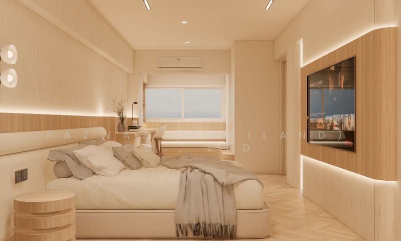 พื้นที่ 81.44 ตร.ม. ออกแบบลงตัว มี 2 ห้องนอน 1 ห้องน้ำ ห้องนั่งเล่นโปร่ง พร้อมครัวทันสมัย และระเบียงขนาดใหญ่สำหรับพักผ่อนชมวิว