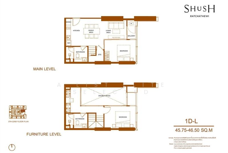 ชูช์ ราชเทวี (SHUSH Ratchathewi) โครงการคอนโดมิเนียมความสูง 32 ชั้น บนทำเลติดถนนพญาไท ใจกลาง CBD ราชเทวี เพียง 140 เมตรถึงรถไฟฟ้า BTS สถานีราชเทวี และใกล้กับสยามดิสคัฟเวอรี่เพียง 800 เมตร เป็นผลงานการพัฒนาโครงการจากบริษัท แสนสิริ จำกัด (มหาชน) โครงการนี้มีเนื้อที่ประมาณ 2 ไร่ จำนวน 383 ยูนิต มีพื้นที่ใช้สอยตั้งแต่ 31.25-117.25 ตารางเมตร ขนาด 1-3 ห้องนอน 1-3 ห้องน้ำ คาดว่าจะแล้วเสร็จในปี 2569 และมีลักษณะการ ด้วยทำเลที่ตั้งที่มีความอุดมสมบูรณ์สูง ทำให้การเข้าถึงสถานที่สำคัญและแหล่งไลฟ์สไตล์ของผู้อยู่อาศัยใช้ระยะทาง และใช้เวลาไม่นาน โดยในรัศมี 5 กิโลเมตรรอบโครงการมีสถานที่ที่น่าสนใจ เช่น คิงเพาเวอร์ รางน้ำ, สยามพารากอน, เซ็นทรัลเวิลด์, เอ็ม บี เค เซ็นเตอร์, มหาวิทยาลัยสวนดุสิต และโรงพยาบาลราชวิถี เป็นต้น ชูช์ ราชเทวี (SHUSH Ratchathewi) มีแนวคิดในการออกแบบโครงการ คือ ซิมโฟนี บทใหม่ของการใช้ชีวิต บนทำเล CBD ราชเทวี ที่แวดล้อมไปด้วยความอุดมสมบูรณ์ ผสานพื้นที่สีเขียวและสิ่งอำนวยความสะดวกครบครัน การออกแบบห้องพักอาศัยเน้นห้องความสูงเพดาน 4.5 เมตรสไตล์ Loft และมีห้อง Simplex ที่มีความสูงเพดาน 2.7 เมตร พร้อมเปิดการขายแบบ Fully Fitted ที่ผู้อยู่อาศัยจะได้รับ เครื่องปรับอากาศแบบฝังฝ้า เคาน์เตอร์ทำครัวปูท็อปด้วยกระเบื้องลายหินอ่อนแผ่นใหญ่ พร้อมตู้เก็บของแบบแขวนผนังและตั้งพื้น เตาแม่เหล็กไฟฟ้า, เครื่องดูดควัน, อ่างล้างจาน และไมโครเวฟ Built-in ตู้เก็บรองเท้า ตู้เสื้อผ้า ด้านในมีตู้เซฟ และห้องเก็บของใต้บันได มีชั้นวางของ (เฉพาะห้อง Loft) สุขภัณฑ์ภายในห้องน้ำครบชุด พร้อมฉากกั้น ปลั๊กไฟและสวิตช์แบบ ART DNA ติดตั้งกระจก Low-E สามารถป้องกันความร้อน ช่วยสะท้อนรังสียูวี และป้องกันละอองน้ำ ติดตั้ง Digital Door Lock แบบ 5 ระบบ จากแบรนด์ Philips ความสูงเพดาน 4.5 เมตร ชั้นลอยมีความสูงเพดาน 2.25 เมตร และภายในห้องนอนมีความสูงเพดาน 2.2 เมตร ส่วนค่าใช้จ่ายส่วนกลางคิดตามโฉนดจริง คือ เฉพาะพื้นที่ชั้น 1 ไม่รวมชั้นลอย พื้นที่โฉนด 28.50-28.75 ตาราเมตร พื้นที่ใช้สอย 40.75-41.25 ตารางเมตร ขนาด 1 ห้องนอน 1 ห้องน้ำ และ 1 ห้องโถง พื้นที่โฉนด 34.25-35.50 ตารางเมตร พื้นที่ใช้สอย 49-50.50 ตารางเมตร ขนาด 1 ห้องนอน 1 ห้องน้ำ และ 1 ห้องโถง พื้นที่โฉนด 41.75-46.75 ตารางเมตร พื้นที่ใช้สอย 62.75-75.75 ตารางเมตร ขนาด 2 ห้องนอน 2 ห้องน้ำ และ 1 ห้องโถง มีความสูงเพดาน 2.7 เมตร พื้นที่ใช้สอย 31.25-57.25 ตารางเมตร ขนาด 1 ห้องนอน 1 ห้องน้ำ และ 1 ห้องโถง พื้นที่ใช้สอย 60 ตารางเมตร ขนาด 2 ห้องนอน 1 ห้องน้ำ และ 1 ห้องโถง พื้นที่ใช้สอย 70.25-89.50 ตารางเมตร ขนาด 2 ห้องนอน 2 ห้องน้ำ และ 1 ห้องโถง พื้นที่ใช้สอย 97-117.25 ตารางเมตร ขนาด 3 ห้องนอน 3 ห้องน้ำ และ 1 ห