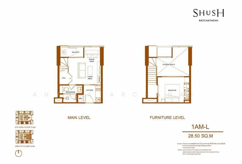 ชูช์ ราชเทวี (SHUSH Ratchathewi) โครงการคอนโดมิเนียมความสูง 32 ชั้น บนทำเลติดถนนพญาไท ใจกลาง CBD ราชเทวี เพียง 140 เมตรถึงรถไฟฟ้า BTS สถานีราชเทวี และใกล้กับสยามดิสคัฟเวอรี่เพียง 800 เมตร เป็นผลงานการพัฒนาโครงการจากบริษัท แสนสิริ จำกัด (มหาชน) โครงการนี้มีเนื้อที่ประมาณ 2 ไร่ จำนวน 383 ยูนิต มีพื้นที่ใช้สอยตั้งแต่ 31.25-117.25 ตารางเมตร ขนาด 1-3 ห้องนอน 1-3 ห้องน้ำ คาดว่าจะแล้วเสร็จในปี 2569 และมีลักษณะการ ด้วยทำเลที่ตั้งที่มีความอุดมสมบูรณ์สูง ทำให้การเข้าถึงสถานที่สำคัญและแหล่งไลฟ์สไตล์ของผู้อยู่อาศัยใช้ระยะทาง และใช้เวลาไม่นาน โดยในรัศมี 5 กิโลเมตรรอบโครงการมีสถานที่ที่น่าสนใจ เช่น คิงเพาเวอร์ รางน้ำ, สยามพารากอน, เซ็นทรัลเวิลด์, เอ็ม บี เค เซ็นเตอร์, มหาวิทยาลัยสวนดุสิต และโรงพยาบาลราชวิถี เป็นต้น ชูช์ ราชเทวี (SHUSH Ratchathewi) มีแนวคิดในการออกแบบโครงการ คือ ซิมโฟนี บทใหม่ของการใช้ชีวิต บนทำเล CBD ราชเทวี ที่แวดล้อมไปด้วยความอุดมสมบูรณ์ ผสานพื้นที่สีเขียวและสิ่งอำนวยความสะดวกครบครัน การออกแบบห้องพักอาศัยเน้นห้องความสูงเพดาน 4.5 เมตรสไตล์ Loft และมีห้อง Simplex ที่มีความสูงเพดาน 2.7 เมตร พร้อมเปิดการขายแบบ Fully Fitted ที่ผู้อยู่อาศัยจะได้รับ เครื่องปรับอากาศแบบฝังฝ้า เคาน์เตอร์ทำครัวปูท็อปด้วยกระเบื้องลายหินอ่อนแผ่นใหญ่ พร้อมตู้เก็บของแบบแขวนผนังและตั้งพื้น เตาแม่เหล็กไฟฟ้า, เครื่องดูดควัน, อ่างล้างจาน และไมโครเวฟ Built-in ตู้เก็บรองเท้า ตู้เสื้อผ้า ด้านในมีตู้เซฟ และห้องเก็บของใต้บันได มีชั้นวางของ (เฉพาะห้อง Loft) สุขภัณฑ์ภายในห้องน้ำครบชุด พร้อมฉากกั้น ปลั๊กไฟและสวิตช์แบบ ART DNA ติดตั้งกระจก Low-E สามารถป้องกันความร้อน ช่วยสะท้อนรังสียูวี และป้องกันละอองน้ำ ติดตั้ง Digital Door Lock แบบ 5 ระบบ จากแบรนด์ Philips ความสูงเพดาน 4.5 เมตร ชั้นลอยมีความสูงเพดาน 2.25 เมตร และภายในห้องนอนมีความสูงเพดาน 2.2 เมตร ส่วนค่าใช้จ่ายส่วนกลางคิดตามโฉนดจริง คือ เฉพาะพื้นที่ชั้น 1 ไม่รวมชั้นลอย พื้นที่โฉนด 28.50-28.75 ตาราเมตร พื้นที่ใช้สอย 40.75-41.25 ตารางเมตร ขนาด 1 ห้องนอน 1 ห้องน้ำ และ 1 ห้องโถง พื้นที่โฉนด 34.25-35.50 ตารางเมตร พื้นที่ใช้สอย 49-50.50 ตารางเมตร ขนาด 1 ห้องนอน 1 ห้องน้ำ และ 1 ห้องโถง พื้นที่โฉนด 41.75-46.75 ตารางเมตร พื้นที่ใช้สอย 62.75-75.75 ตารางเมตร ขนาด 2 ห้องนอน 2 ห้องน้ำ และ 1 ห้องโถง มีความสูงเพดาน 2.7 เมตร พื้นที่ใช้สอย 31.25-57.25 ตารางเมตร ขนาด 1 ห้องนอน 1 ห้องน้ำ และ 1 ห้องโถง พื้นที่ใช้สอย 60 ตารางเมตร ขนาด 2 ห้องนอน 1 ห้องน้ำ และ 1 ห้องโถง พื้นที่ใช้สอย 70.25-89.50 ตารางเมตร ขนาด 2 ห้องนอน 2 ห้องน้ำ และ 1 ห้องโถง พื้นที่ใช้สอย 97-117.25 ตารางเมตร ขนาด 3 ห้องนอน 3 ห้องน้ำ และ 1 ห