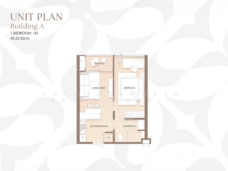 ขนาดพื้นที่ใช้สอยของยูนิต Siamese Bangtao คือ 45 ตร.ม..