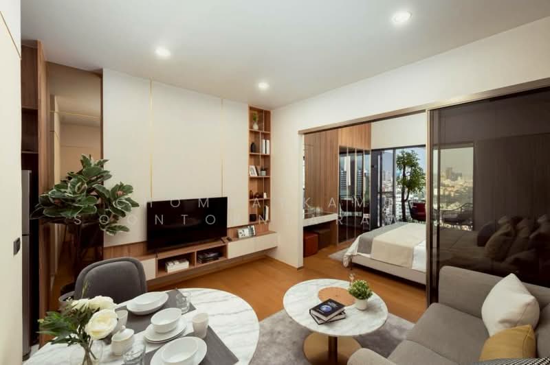 This 47.37 square meter freehold condo offers a stylish 1 bedroom, 1 bathroom layout on the 12th floor of Siamese Exclusive Sukhumvit 31 in Khlong Toei Nuea, Wattana, Bangkok. The interior presents a modern open-plan design with fully furnished spaces and a calm, neutral atmosphere.