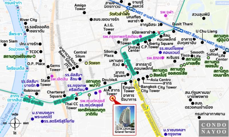 โครงการคอนโดมิเนียมไฮไรส์ ย่านตลาดพลู ราคาเริ่มต้นต่ำกว่า 5 ล้าน st louis grand terrace เป็นคอนโดมิเนียมไฮไรส์ความสูง 28 ชั้น 1 อาคาร จำนวน 245 ยูนิต สร้างเสร็จพร้อมอยู่ และสะดวกต่อการเดินทางเนื่องจากใกล้รถไฟฟ้า BTS สถานีสุรศักดิ์ โดยโครงการ st louis grand terrace นั้น ตั้งอยู่ตรงย่านสาธรซึงถือว่าเป็นจุดศูนย์กลางของความสนใจและรวมถึงสิ่งอำนวยความสะดวกอีกมากมาย ทำให้โครงการ st louis grand terrace มีราคาเริ่มต้นที่ 4.5 ล้านบาท st louis grand terrace ตัวโครงการตั้งอยู่ที่ ซอยเซนต์หลุยส์ 3 ยานนาวา สาทร กรุงเทพมหานคร 10500 โดย Metro Star Property ทางโครงการ st louis grand terrace ได้สร้างตัวคอนโดออกมาในรูปแบบสไตล์ Modern-Contemporary ซึ่งจะหนักไปที่ Modern มากกว่าหน่อย โดยใช้สีขาวเพื่อความเรียบหรูดูมีสไตล์ แถมยังดูสบายตา น่าอยู่อีกด้วย ถือว่าตอบโจทย์สำหรับคนเมืองได้ดีเลยทีเดียวเพราะทำให้การเดินทางสะดวกสบาย st louis grand terrace มีจุดเด่นมากมายไม่ว่าจะเป็นในเรื่องของย่าน ที่เป็นทำเลเพียบพร้อมไปด้วยสิ่งอำนวยความสะดวกครบอย่าง ตอบโจทย์คนที่กำลังหาที่อยู่อาศัยในย่านใจกลางเมือง ซึ่งก็มีบรรยากาศความคึกคักและเป็นที่น่าสนใจ แถมยังใกล้รถไฟฟ้า BTS สถานีสุรศักดิ์ ซึ่งห่างจากตัวโครงการ st louis grand terrace เพียงแค่ 650 เมตร นอกจากนี้ยังมีสิ่งอำนวยความสะดวกที่จัดเต็มรองรับให้ผู้อยู่อาศัยโครงการ st louis grand terrace อย่างครบถ้วนทุกความต้องการ ถือว่าเป็นตัวเลือกที่ดีมากๆสำหรับการอยู่อาศัยในย่ายใจกลางเมือง โครงการ st louis grand terrace ให้คุณค่ากับดีไซน์ เพื่อการใช้ชีวิตที่โดดเด่น ทุกรายละเอียดการออกแบบ โครงการ st louis grand terrace ได้สร้างตัวคอนโดออกมาในรูปแบบสไตล์ Modern-Contemporary ซึ่งจะหนักไปที่ Modern มากกว่าหน่อย โดยใช้สีขาวเพื่อความเรียบหรูดูดีมีสไตล์ แถมยังดูสบายตา น่าอยู่ ที่เน้นเส้นสาย ทันสมัย สง่างาม รวมไปถึงห้องพักที่ออก แบบอย่างทันสมัยและใช้งานได้จริง แต่ละชั้นจะมีเอกลักษณ์เฉพาะตัวตามโครงสร้างรูปทรงของตึก การเดินทางโดยใช้รถไฟฟ้า เพื่อมายัง st louis grand terrace โดยสามารถใช้บริการรถไฟฟ้า BTS แล้วเลือกลงที่สถานีสุรศักดิ์ จากนั้นมุ่งหน้าไปทางถนนสาทรใต้เพื่อเข้าสู่ถนนประมวญ แล้วเลี้ยวขวาเข้าสู่ซอยสาทร 11 หรือซอยเซนต์หลุยส์ 3 st louis grand terrace จะอยู่ทางซ้ายมือ ใช้เวลาเพียง 8 นาที 650 เมตร จากสถานีรถไฟฟ้า BTS มายัง st louis grand terrace การเดินทางโดยรถยนต์ เพื่อมายัง st louis grand terrace โดยในย่านสาทรนี้ไม่ถนนหลายเส้นตัดผ่านไม่ว่าจะเป็น ถนนสีลม ถนนเจริญกรุง ถนนนราธิวาสราชนครินทร์ ถนนจันทร์ ซึ่งจะเริ่มการเดินทางจากรถไฟฟ้า BTS สถานีสุรศักดิ์ โดยมุ่งไปตามถนนสาทรใต้เลียวซ้ายที่แยก สาทร-สุรศักดิ์เข้าสู่ถนนเจริญราษฎร์ ชิด