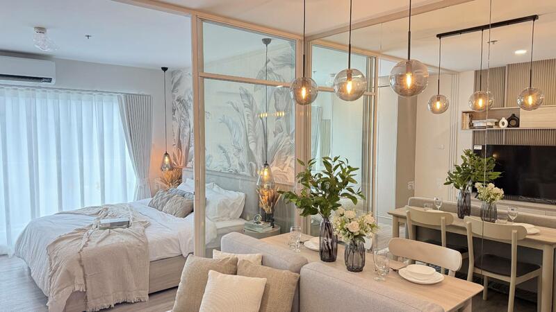This 30 sq.m. fully furnished studio on the 27th floor (TOP FLOOR) at Supalai Blue Whale offers comfort, privacy, and a stunning high-rise view.